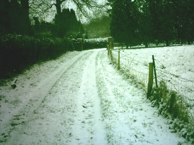 Jour de neige, le 1er janvier 2004, la maison et le chemin d'accès :